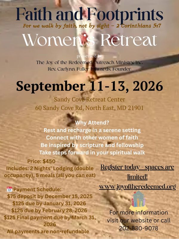 You are warmly invited to join us for the Faith & Footprints Spiritual Retreat for Women—a sacred time set apart to rest, reflect, and reconnect with God and one another. Join us for a 2½-day retreat that deepens reflection and allows more space for movement, connection, and spiritual growth, designed to guide participants on a spiritual journey that mirrors both inward reflection and outward movement—perfect for grounding faith through practical application.